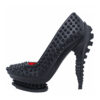 Meticulously designed strappy sandal with grade A quality vegan black leather and blood red inner lining. Matching red cushioned foot-bed for extra comfort. Named after Kaliya, the deadly Naga known for its deadly poison and ability to cause destruction to those around her, this handcrafted sandal is designed for those who warn of caution when approaching. Gunmetal mini spikes lined on the edges of the straps parallel to holed rivets to match the color of the heel. Adjustable front laces to ensure straps press onto the feet. Built on our signature 5″ curved dragon tail heel using one the finest ABS material available on the market, reinforced with an ultra-thin invisible stiletto built inside the heel for maximum weight support. Skeleton ribs lined down the mid outsole with attached to a 1.5″ bone platform, ending with the fearsome reptilian skull facing front.