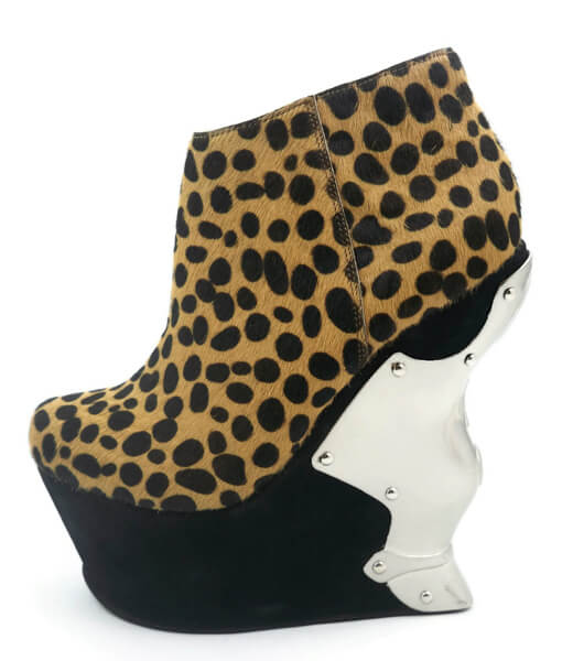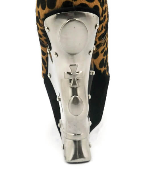 Chrome plated iron cross wedge w/ soft leopard fabric & inner zipper